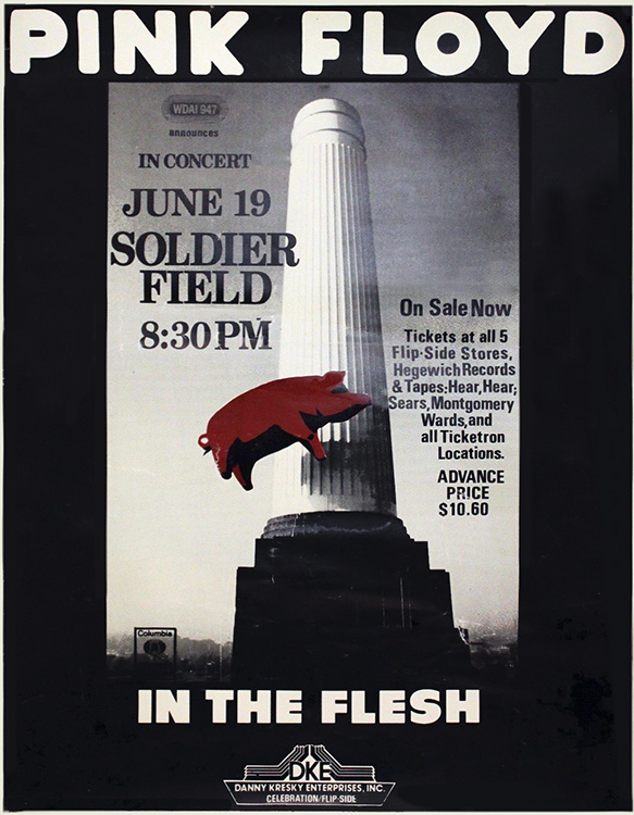 Notes: A poster for the Pink Floyd concert at Soldier Field in Chicago, Illinois on June 19, 1977.