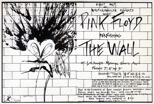 Notes: A handbill for the Pink Floyd Wall concerts at The Sports Arena in Los Angeles, California on February 7-13, 1980.