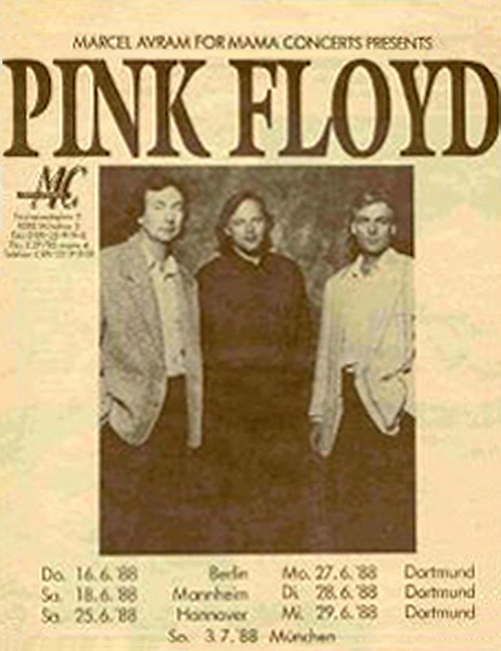 Notes: A poster for the Pink Floyd concert at the Platz der Republik in West Berlin, West Germany on June 16, 1988.