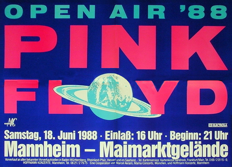 Notes: A poster for the Pink Floyd concert at the Maimarktgel nde in Mannheim, West Germany on June 18, 1988.