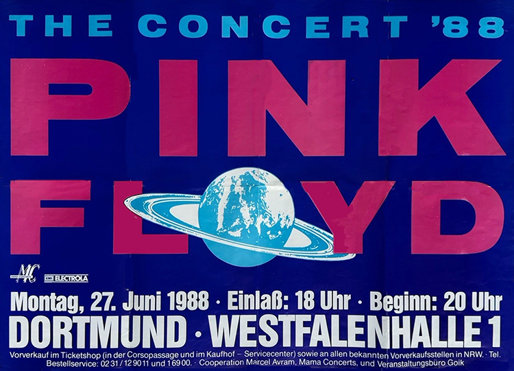 Notes: A poster for the Pink Floyd concerts at the Westfalenhalle in Dortmund, West Germany on June 27-29, 1988.
