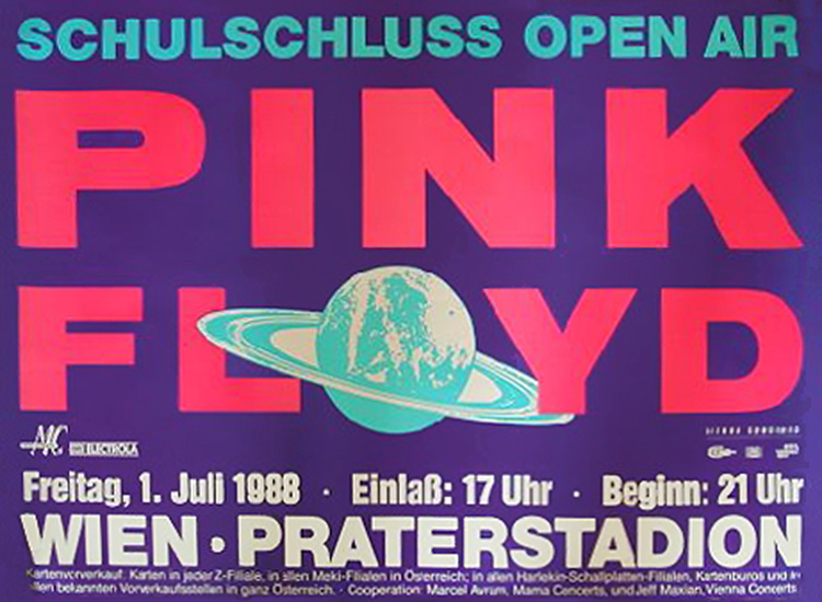 Notes: A poster for the Pink Floyd concert at the Praterstadion in Vienna, Austria on July 1, 1988.