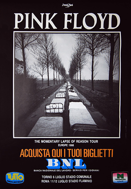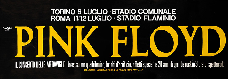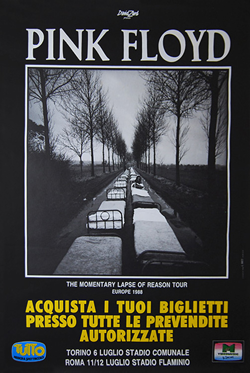 Notes: A poster for the Pink Floyd concert at the Stadio Comunale in Torino, Italy on July 6, 1988, and the Stadio Flaminio in Rome, Italy on July 11-12, 1988.