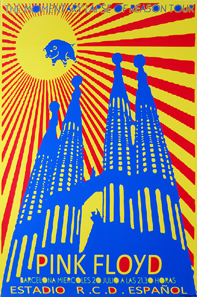Notes: A commemorative poster for the Pink Floyd concert at the Estadio Sarria Espanol FC in Barcelona, Spain on July 20, 1988.