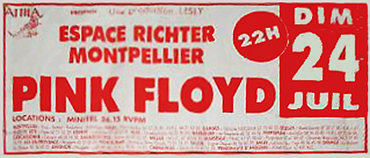 Notes: A poster for the Pink Floyd concert at the Espace Richter in Montpellier, France on July 24, 1988.