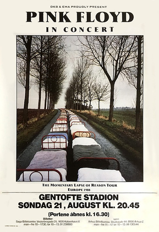 Notes: A poster for the Pink Floyd concert at Gentofte Stadium in Copenhagen, Denmark on August 21, 1988.