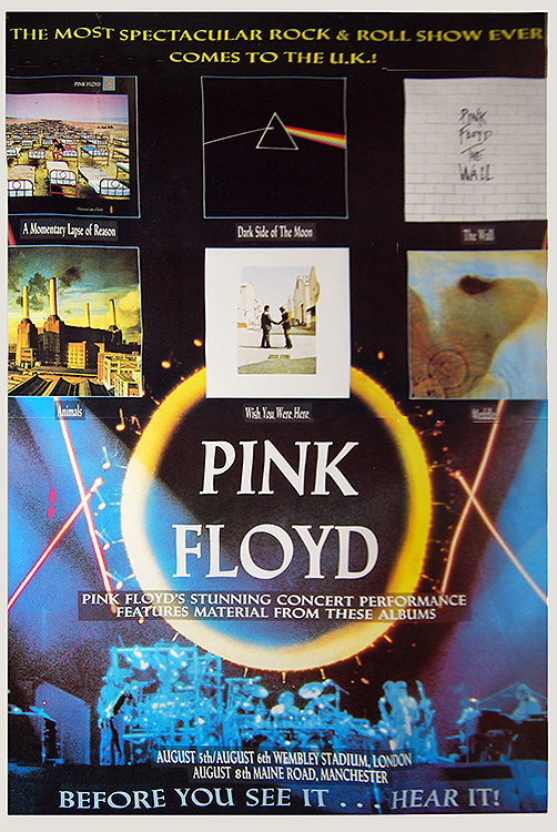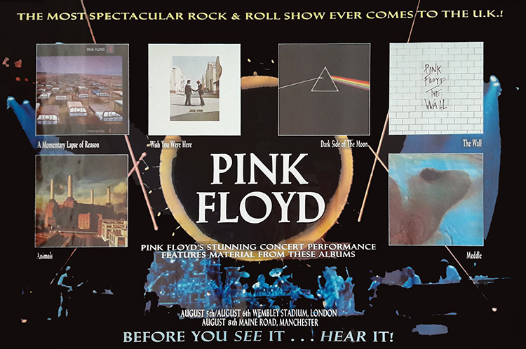 Notes: A large poster for the Pink Floyd concert at Manchester City Football Ground, Maine Road, Moss Side, Manchester, England on August 8, 1988.