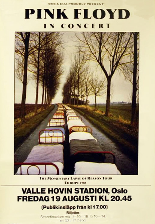 Notes: A poster for the Pink Floyd concert at Valle Hovin Stadion in Oslo, Norway on August 2, 1988.