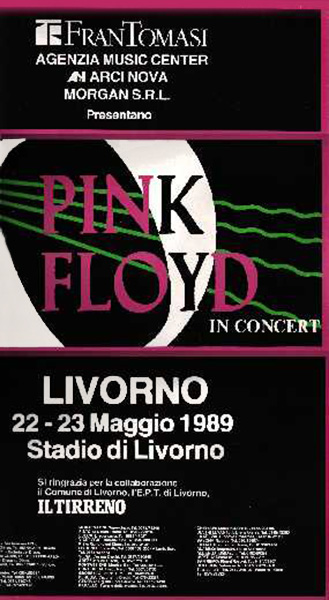 Notes: A poster for the Pink Floyd concerts at the Stadio Comunale Ardenza in Livorno, Italy on May 22-23, 1989.