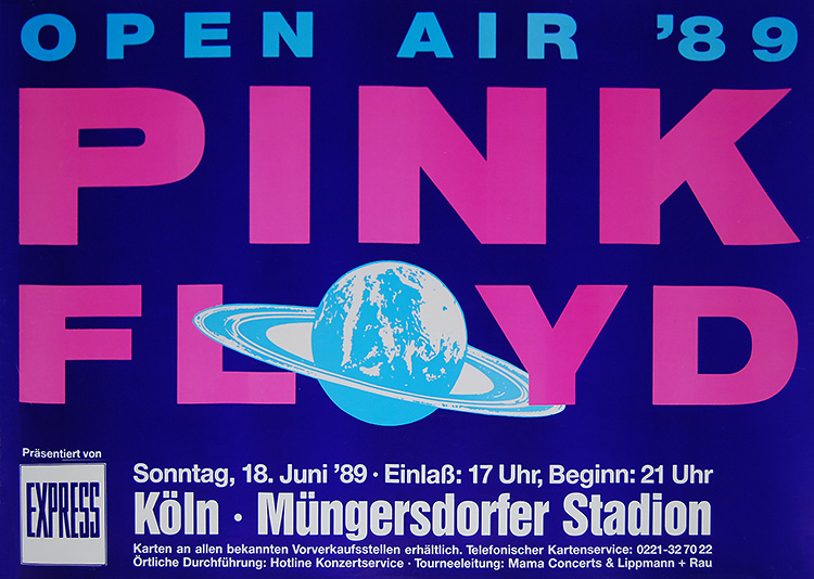 Notes: A poster for the Pink Floyd concert at the Mungersdorfer Stadion in Cologne, West Germany on June 18, 1989.