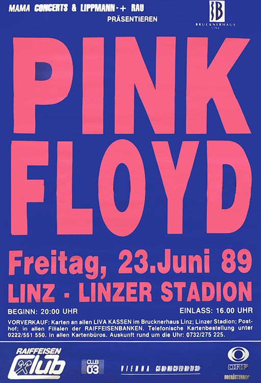 Notes: A poster for the Pink Floyd concert at Linzer Stadion in Linz, Austria on June 23, 1989.