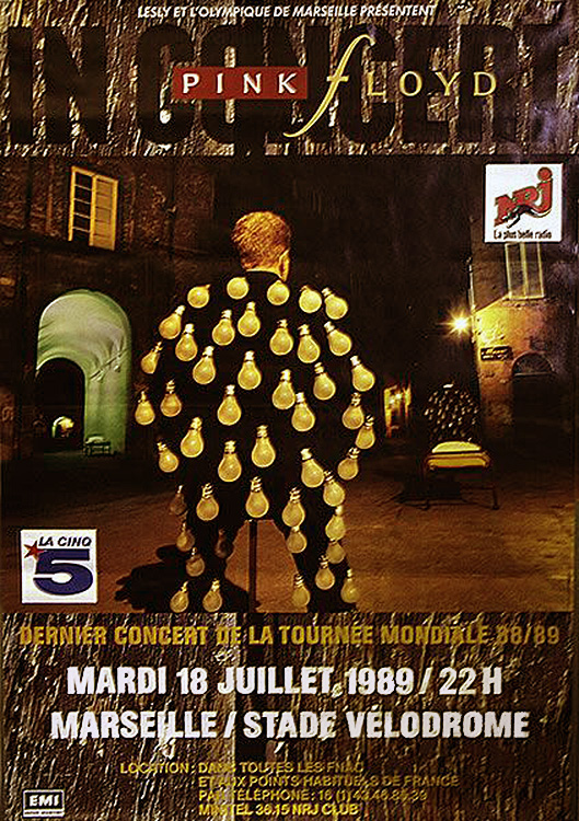 Notes: A poster for the Pink Floyd concert at the Stade Velodrome de Marseilles in Marseilles, France on July 18, 1989.