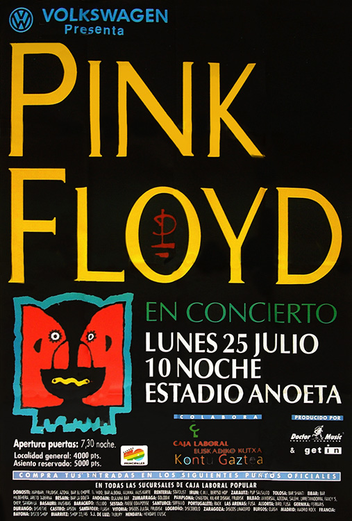 Notes: A poster for the Pink Floyd concert at the Velodrome de Anoeta in San Sebastian, Spain on July 25, 1994.