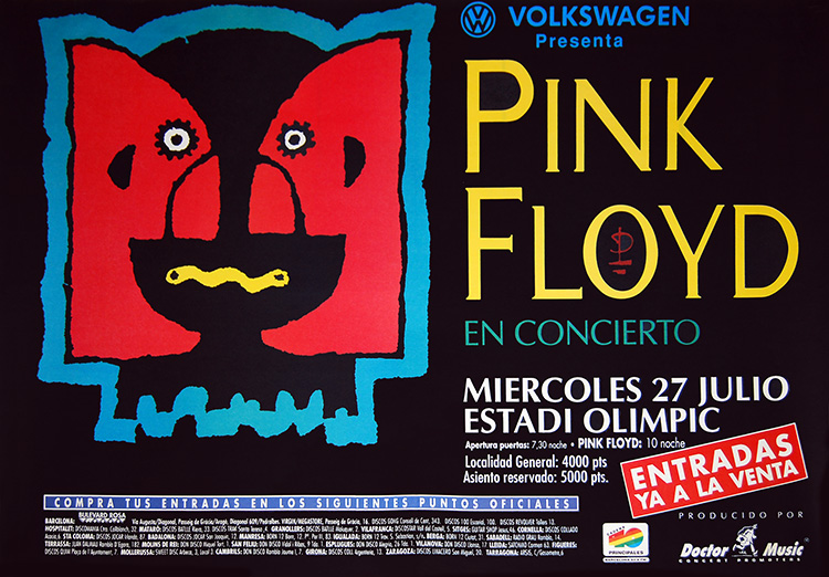 Notes: A poster for the Pink Floyd concert at the Estadio Olimpico in Barcelona, Spain on July 27, 1994.
