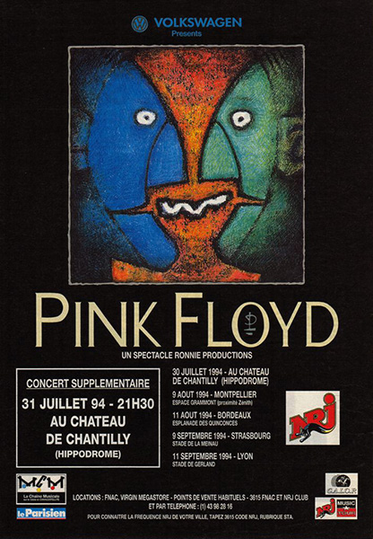 Notes: A poster for the Pink Floyd concerts at the Chateau de Chantilly in Chantilly, France on July 30-31, 1994.