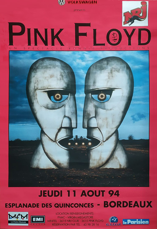 Notes: A poster for the Pink Floyd concert at Esplanade des Quinconces in Bordeaux, France on August 11, 1994.