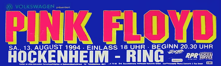 Notes: A poster for the Pink Floyd concert at Hockenheim-ring in Hockenheim, Germany on August 13, 1994.