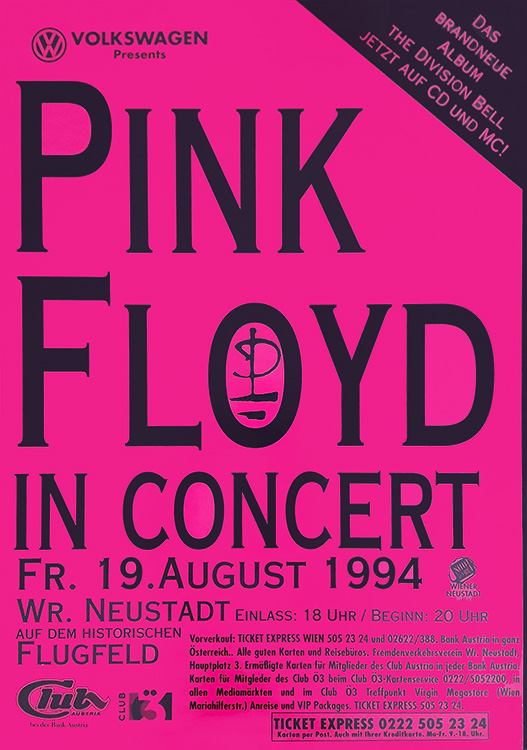 Notes: A poster for the Pink Floyd concert at the Wiener Neustadt - Flugfeld in Vienna, Austria on August 19, 1994.
