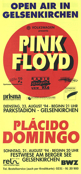 Notes: A poster for the Pink Floyd concert at the Parkstadion in Gelsenkirchen, Germany on August 23, 1994.