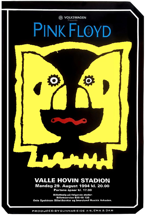 Notes: A poster for the Pink Floyd concert at Valle Hovin Stadion in Oslo, Norway on August 29, 1994.