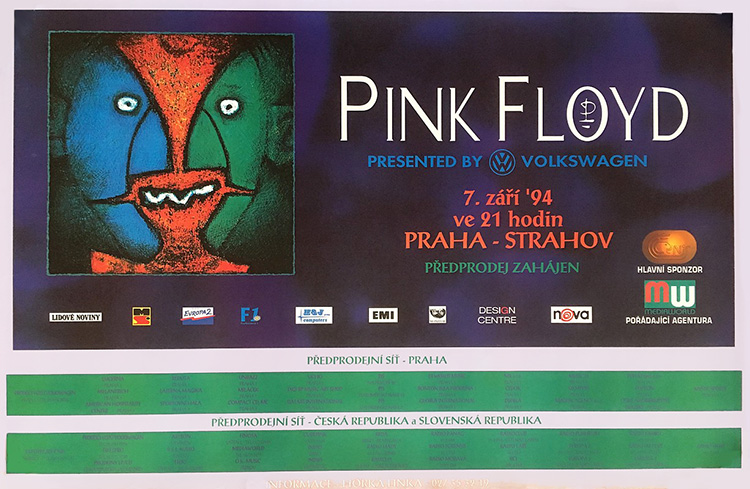 Notes: A poster for the Pink Floyd concert at Strahov Stadion in Prague, Czech Republic on September 7, 1994.