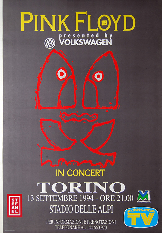 Notes: A poster for the Pink Floyd concert at Stadio delle Alpi in Torino, Italy on September 13, 1994.
