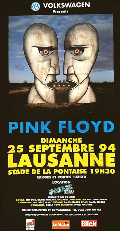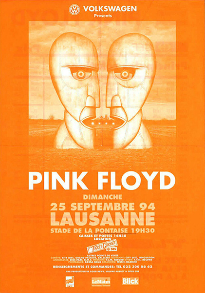 Notes: A poster for the Pink Floyd concert at the Stade de la Pontaise in Lausanne, Switzerland on September 25, 1994.