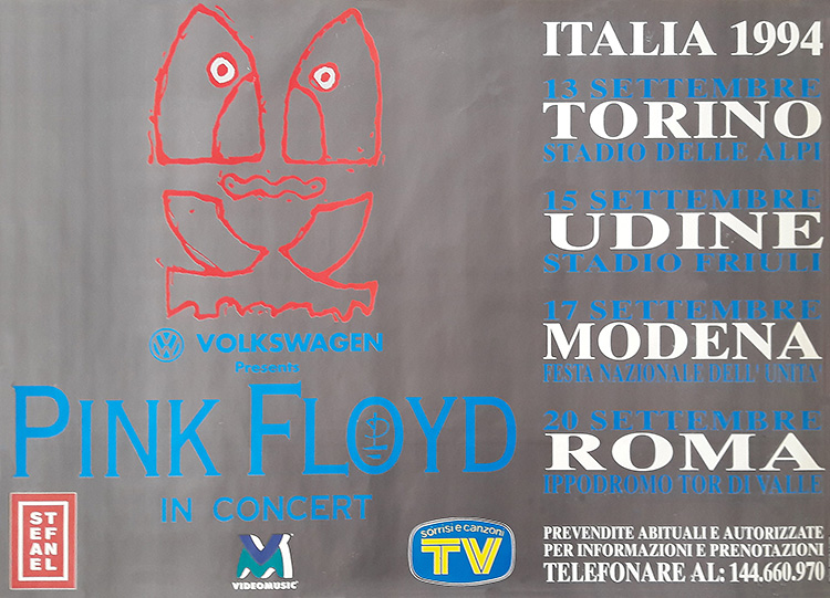 Notes: A poster for the Pink Floyd Italian tour of September 1994.