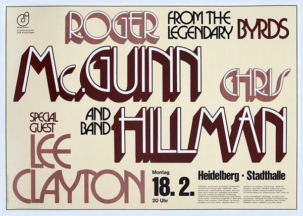 Notes: A poster for McGuinn & Hillman and Lee Clayton at the Stadthalle in Heidelberg, West Germany on February 18, 1980.