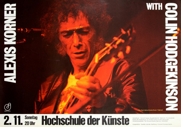 Notes: A poster for Alexis Korner with Colin Hodgekinson at the Hochschule der Kunste in Berlin, West Germany on November 2, 1980.