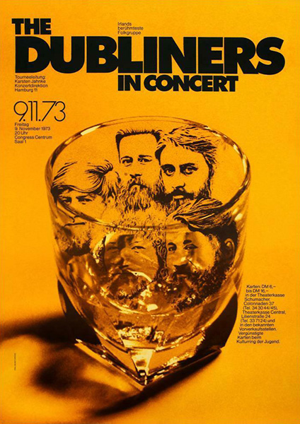 Notes: A poster for The Dubliners in Concert at the Congress Centrum in Hamburg, West Germany on November 9, 1973.
