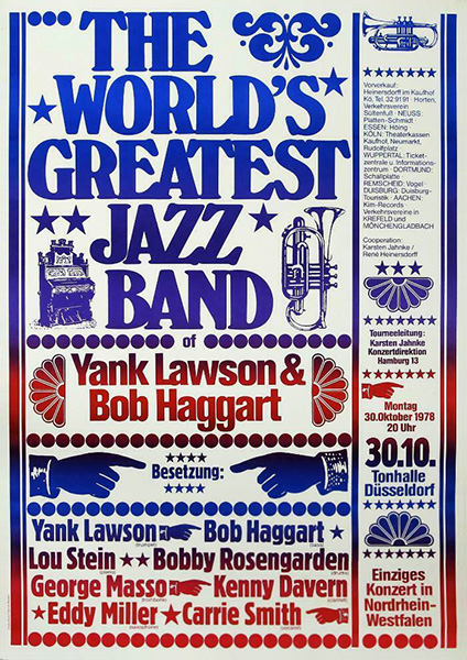 Notes: A poster for The World's Greatest Jazz Band at the Tonhalle in Dusseldorf, West Germany on October 30, 1978.