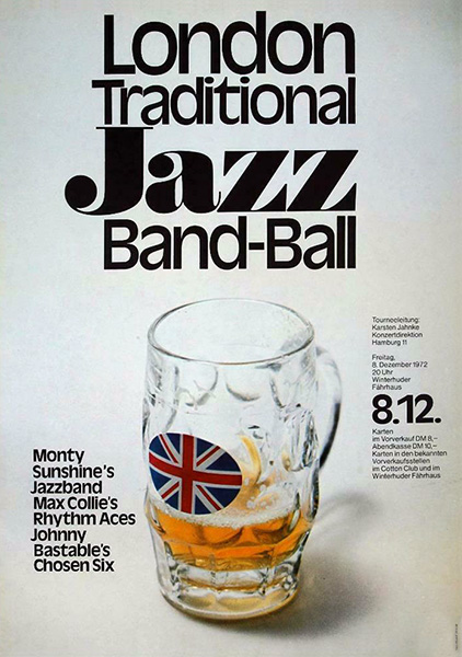 Notes: A poster for the London Traditional Jazz Band-Ball at the Fahrhaus in Winterhuder, Hamburg, West Germany on December 8, 1972.