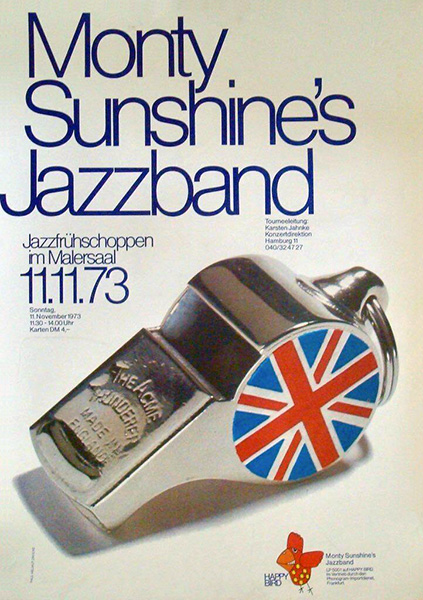 Notes: A poster for Monty Sunshine's Jazzband at the Malersaal in Hamburg, West Germany on November 11, 1973.